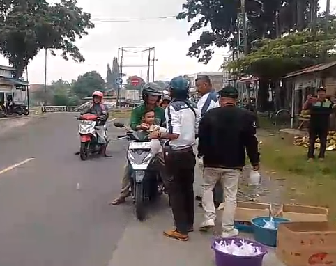 Sekitar 300 pcs Takjil yang berupa ada es campur ,kolak dan Snack ludes di bagikan kepada masyarakat dan para pengguna jalan yang melintas di jalan Raya Kedungreja .