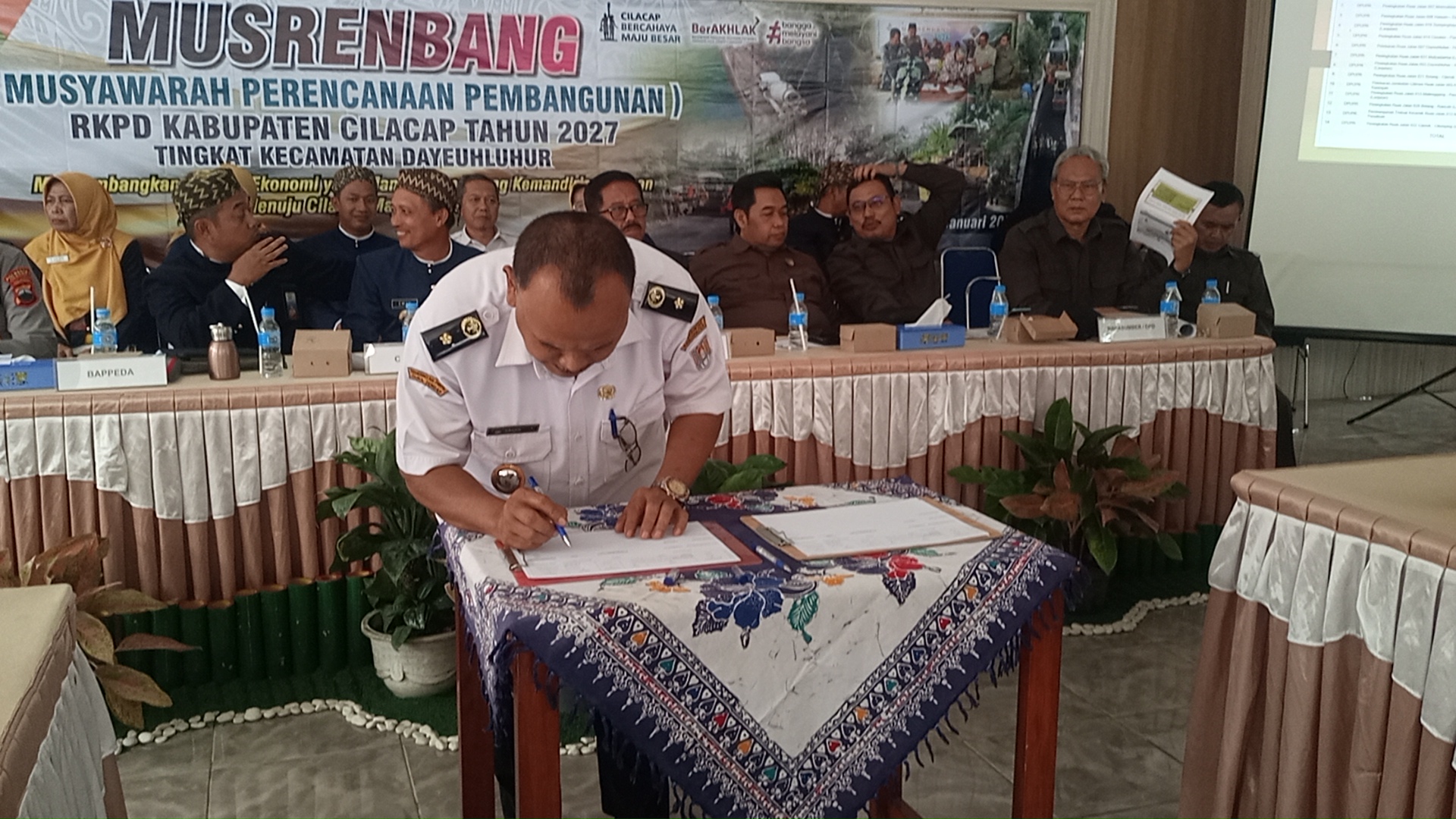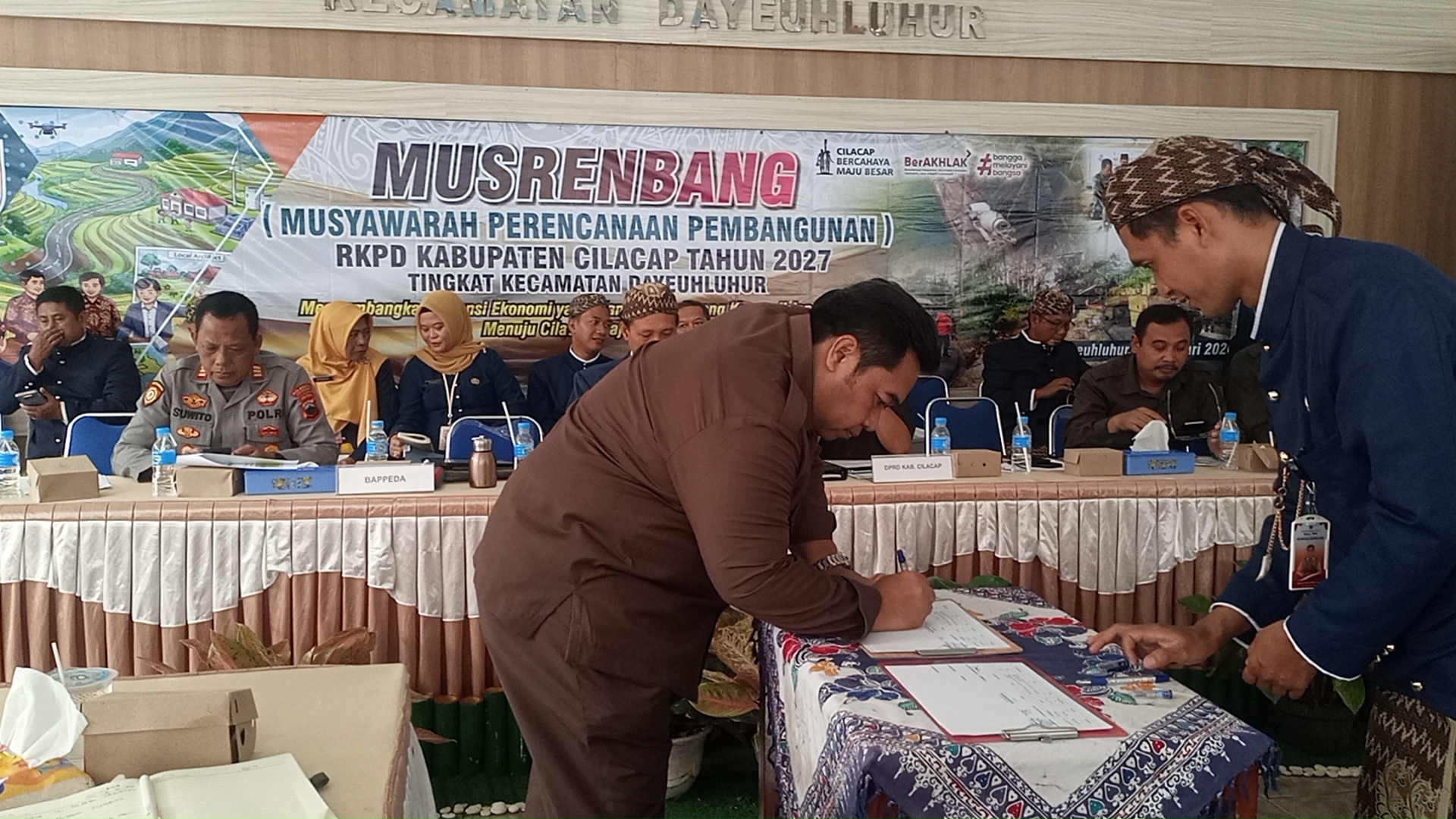 Setelah penyampaian arahan, paparan potensi dan kebutuhan pembangunan dari berbagai pihak, serta diskusi yang mendalam, kegiatan dilanjutkan dengan penandatanganan dokumen hasil musyawarah sebagai bentuk kesepakatan bersama terkait prioritas program dan kegiatan pembangunan yang akan masuk dalam RKPD Kabupaten Cilacap Tahun 2027 untuk wilayah Kecamatan Dayeuhluhur, dalam Penandatangan untuk Pemerintah Desa di wakilkan Kepada Sanen Kepala Desa Sumpinghayu Kecamatan Dayeuhluhur Kabupaten Cilacap Jawa tengah.